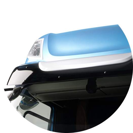 Солнцезащитный козырек новой конструкции позволяет оптимизировать аэродинамику и повысить эффективность расхода топлива. Кроме того, он оснащен стильной алюминиевой вставкой, дополняющей привлекательный образ грузовика.
